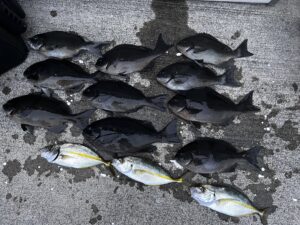 2025-11-24 / 最終更新日時 : 2025-11-24 turikozou 釣果 11/24(月) 天気:☀️ 気温:18℃ 水温:18~18.5℃ 潮周り:中潮 フカセで出船しました。今日は朝から食い渋く苦戦模様でメジナは足裏サイズまででした。その他、アカハタ、シマアジ、ワサなど釣れました。大型のハリス切れもあったようなので今後に期待です。都合により明日25日、27、28日、12/1(月)~5(金)はお休み頂きます。申し訳ありませんがよろしくお願いいたします。 コメントを残す コメントをキャンセルメールアドレスが公開されることはありません。 ※ が付いている欄は必須項目ですコメント ※ 名前 ※ メール ※ サイト 次回のコメントで使用するためブラウザーに自分の名前、メールアドレス、サイトを保存する。