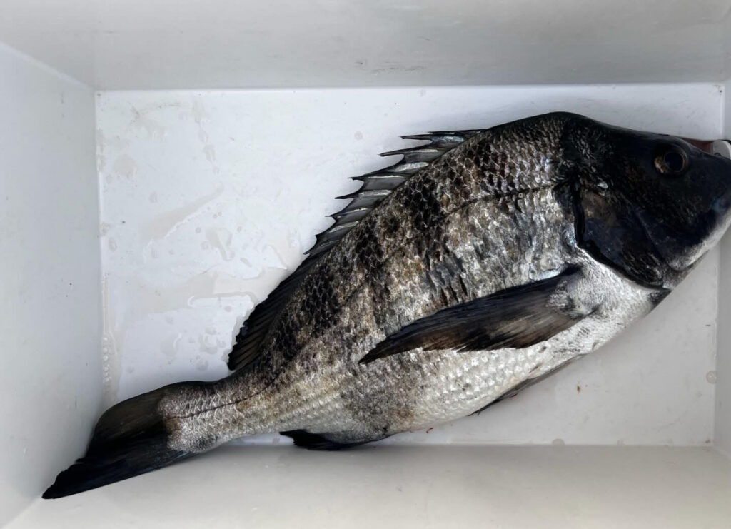週末は凪良くフカセ、底物で出船しました。引き続き激シブな状況で残念ながらメジナの顔は見れず、、クロダイ40~45cm、オオモンハタ40cmが出ました。